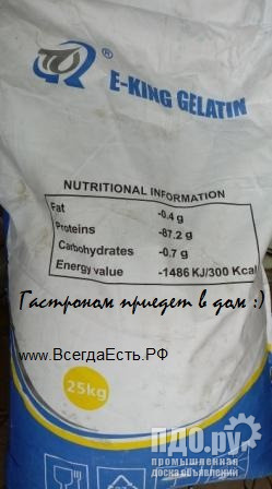 Желатин пищевой говяжий фасовка от 50 граммов до мешка 25 кг.